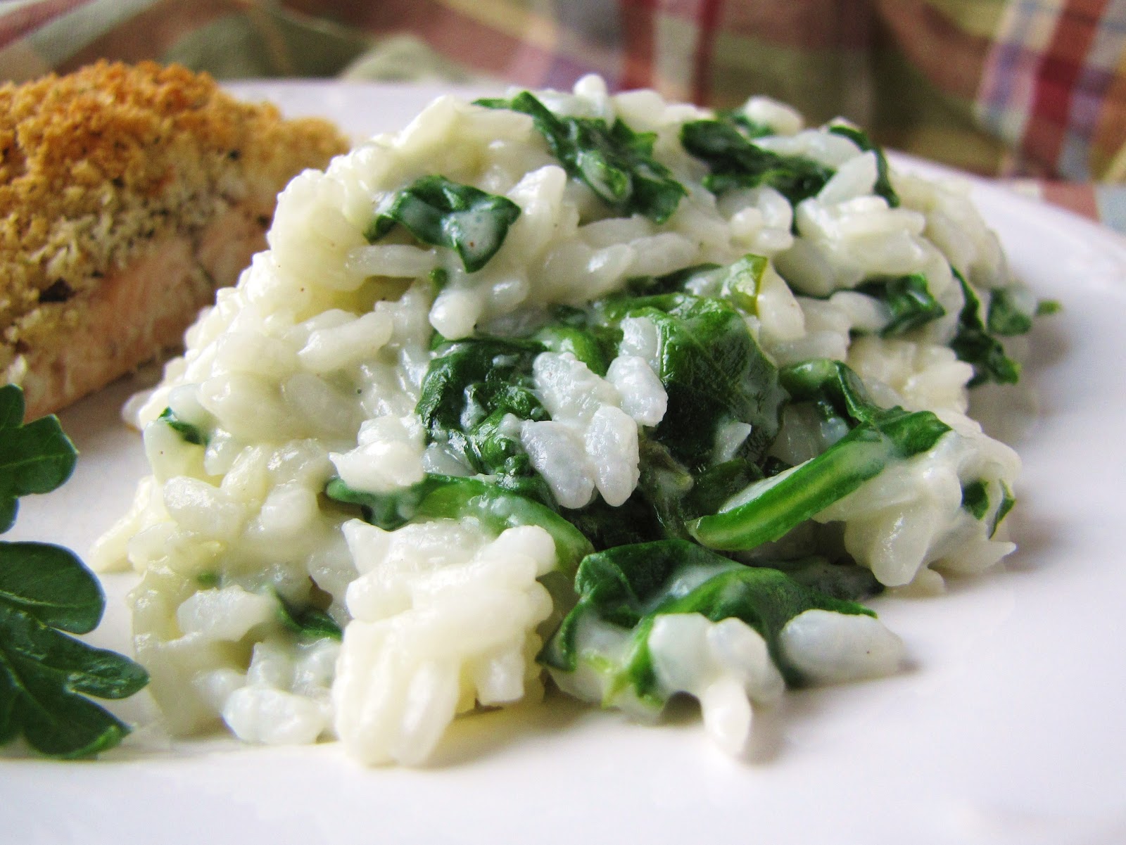 This is one of my favorite side dishes. It’s from Taste of Home. I recently did a healthy makeover on it, mainly to reduce the fat and thereby the calories. I use half and half instead of heavy cream and cut the butter in half. My healthier version also uses twice the amount of rice and spinach (increasing it to four servings), but the sauce amount remains the same. This helps reduce the fat and calories immensely. And guess what? It’s still delicious! At least my husband and I think so. I have made this with medium-grain and long-grain rice and find that the medium makes it creamier. I usually serve it with one of my salmon recipes. I think it’s a great side dish for people with fructose malabsorption (if you can tolerate dairy, which thankfully I can.) If you can’t tolerate garlic, then just leave it out. It will still be tasty!