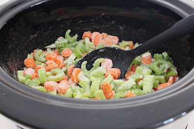 Toss the carrots and celery with the flour in the slow cooker.