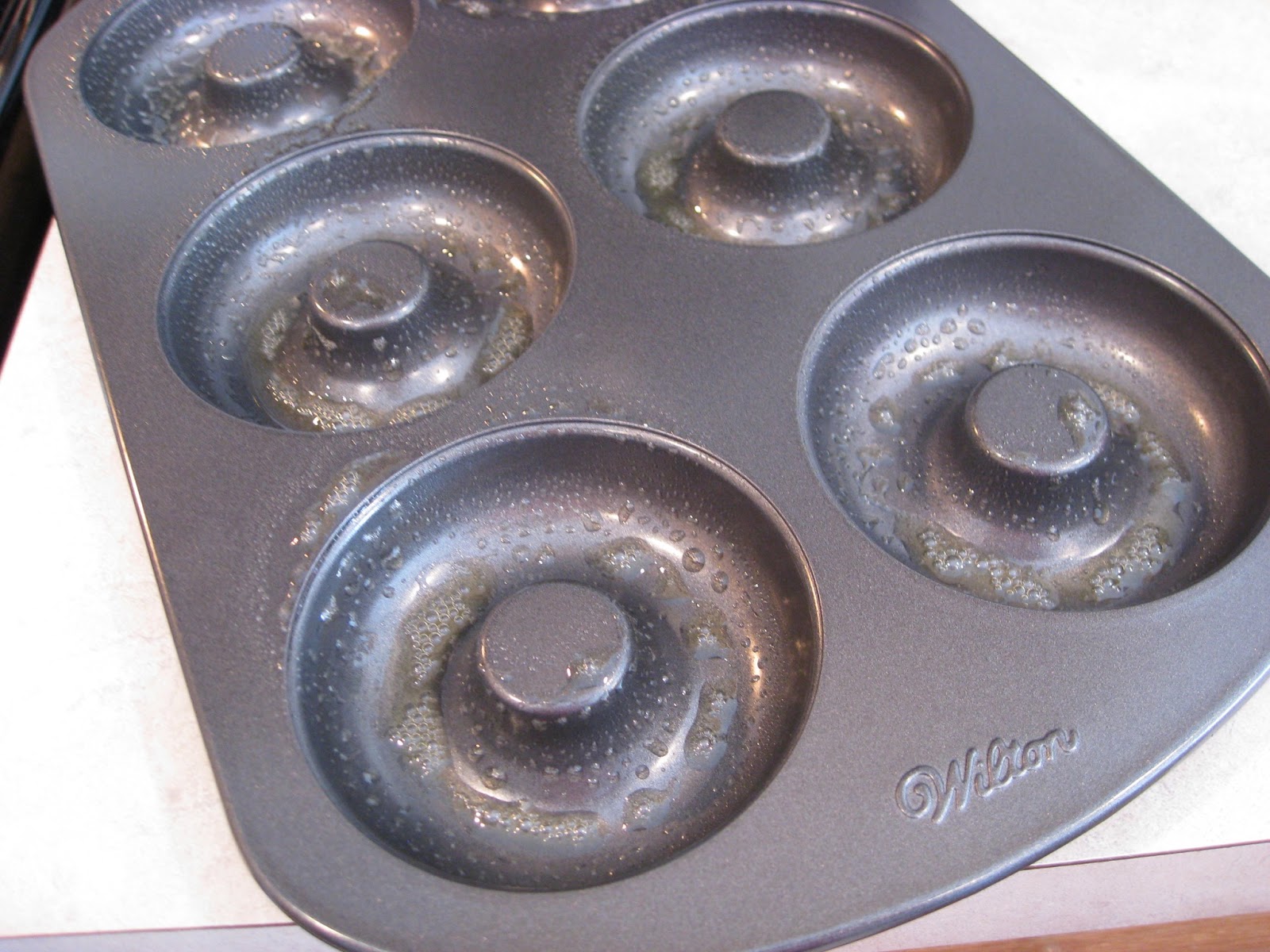 1. Heat oven to 350 degrees F. Lightly grease a doughnut pan.