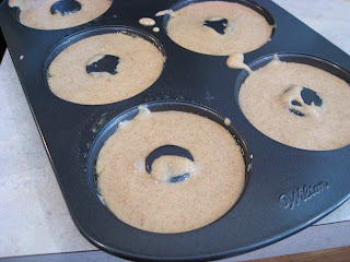 4. Fill the doughnut pan just a scant full and bake for about 15 minutes, until just starting to lightly brown on top. Cool slightly and turn out onto a cooling rack.