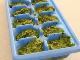 Divide pesto evenly in an ice cube tray. Wrap in plastic wrap and freeze. Once pesto is frozen, remove from tray and store in a heavy-duty freezer storage bag and use as needed.
